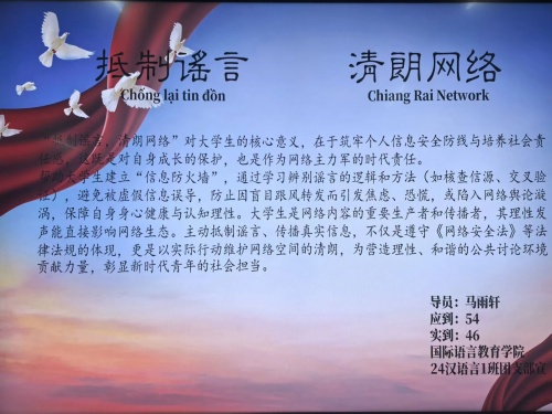 在本次党团主题教育课中,每一个专题都像一把钥匙,为同学们打开认识安全、责任与成长的大门。这些知识是融入校园生活的行动指南。国际语言教育学院将以此为新起点,培养更多敢担当、能吃苦、肯奋斗的时代新人,为民族复兴注入青春动能。
