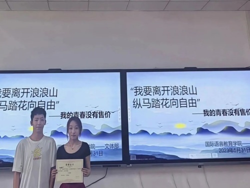 “我要离开浪浪山,去更远的地方看看”。为丰富校园生活,让同学们在假期中更好地放松身心,缓解同学们的压力,放松心灵,激发大学生的摄影热情,培养他们的艺术创作能力。促进不同地区大学生之间的交流与合作,营造和谐幸福的校园文化氛围,国际语言教育学院学生会文体部特于5月31日下午在远东楼教室412——414举办“我要离开浪浪山,纵马踏花向自由——我的青春没有售价”活动。