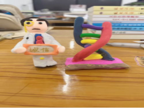 科研诚信是学术生态健康发展的核心基石,针对部分学生学术不端认知模糊、科研诚信意识薄弱的问题,本次活动创新采用手工捏塑形式,让学生先学习科研诚信相关文件,再结合自身感受塑造科研诚信人物或事物。通过亲手创作,学生们直观感受到诚信品质在科研道路上的重要性,在校园内营造出崇尚科研诚信的良好氛围。