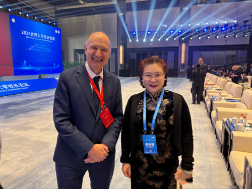 河北外国语学院副董事长、执行校长习伟教授,校长外事助理、副校长杨振博士,校委委员、英语学院院长李晓亮,英语学院英语口译教研室主任郭惠昀组成河北外国语学院代表团参加2025世界大学校长论坛。会议期间,河北外国语学院代表团与26所世界高水平大学校长、副校长等领导会晤交流、洽谈合作、气氛友好、成果丰硕。河北外国语学院代表团参加本次国际会议,极大促进河北外国语学院国际高端合作事业发展,将与多所世界高水平大学深化合作。
